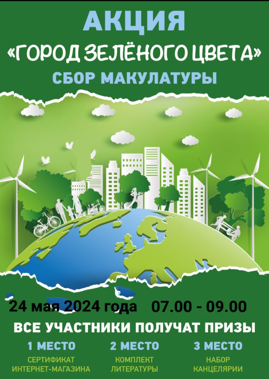 24 мая 2024 года в нашем саду пройдет сбор макулатуры в рамках проекта "Город Зелёного цвета".