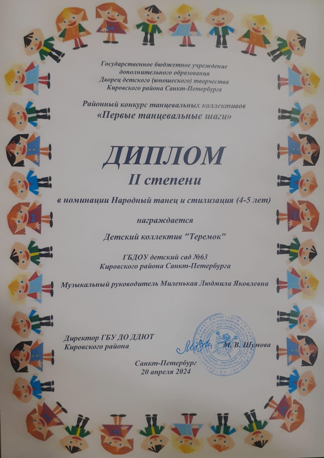 Наш танцевальный коллектив "Теремок" (группа №7) стал дипломантом районного хореографического конкурса "Первые танцевальные шаги", который проходил в ДДЮТ Кировского района. У ребят 2 место!