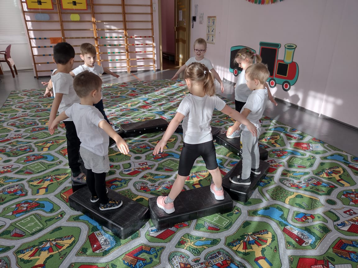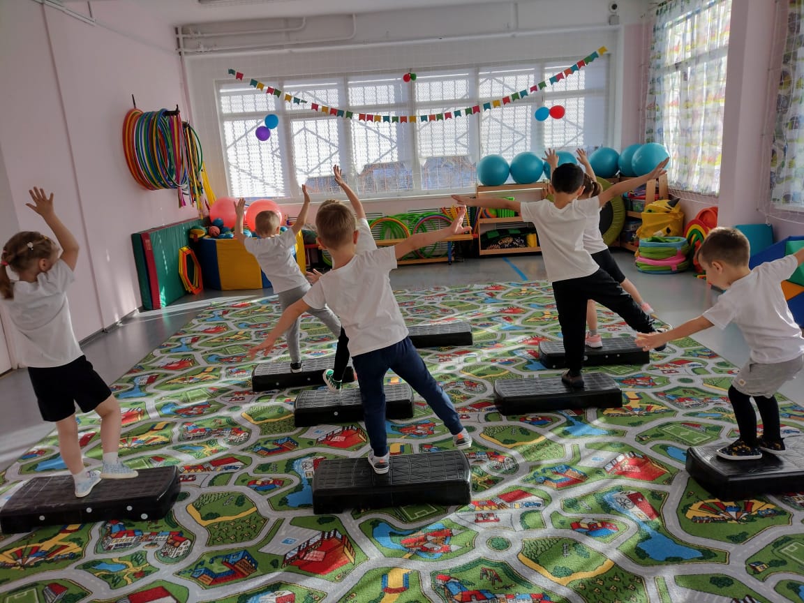 Занятия проводятся с детьми средней и подготовительной группы оздоровительной направленности на специальном оборудовании (степ-платформе). Кружковая работа ведется один раз в неделю и воздействует на организм ребенка комплексно. Способствует укреплению дыхательной, сердечно-сосудистой, нервной систем и опорно-двигательного аппарата, содействует развитию двигательных, музыкально-ритмических способностей и вестибулярного аппарата. Универсальность и многофункциональность степ-платформы позволяет использовать ее как гимнастический снаряд, который может быть предметом, ориентиром, препятствием, отягощением или опорой в различных видах двигательной активности. Структура занятий по степ-аэробике отвечает современным требованиям построения и проведения оздоровительных занятий по физической культуре детей дошкольного возраста. На занятиях дети осваивают базовые шаги степ-аэробики, разучивают музыкальные композиции с их использованием, играют в подвижные игры с использованием степ-платформ, учатся координировать свои движения, получают положительные эмоции.