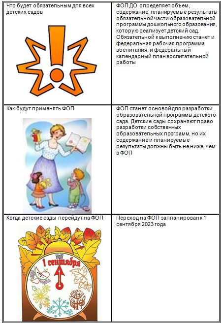 ФОП ДО определяет объем, содержание, планируемые результаты обязательной части образовательной программы дошкольного образования, которую реализует детский сад.