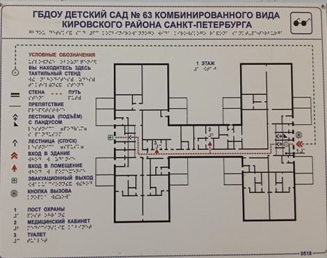 - Дублирование надписей, знаков и иной текстовой и графической информации знаками, выполненными рельефно-точечным шрифтом Брайля